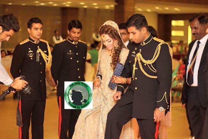 جوڑے نے شادی کے اہم دن بھی یونیفارم پہنا ہوا تھا، جبکہ اہلیہ کیپٹن ثںاء کے ہاتھ میں مہندی کو بھی دیکھا جا سکتا ہے۔ فوجی جوان اہم دن کے موقع پر بھی اس دن کو یادگار اپنے طریقے سے بناتے ہیں۔