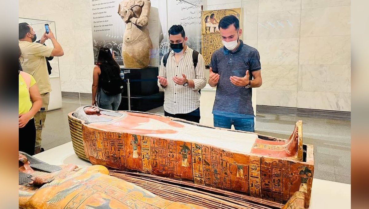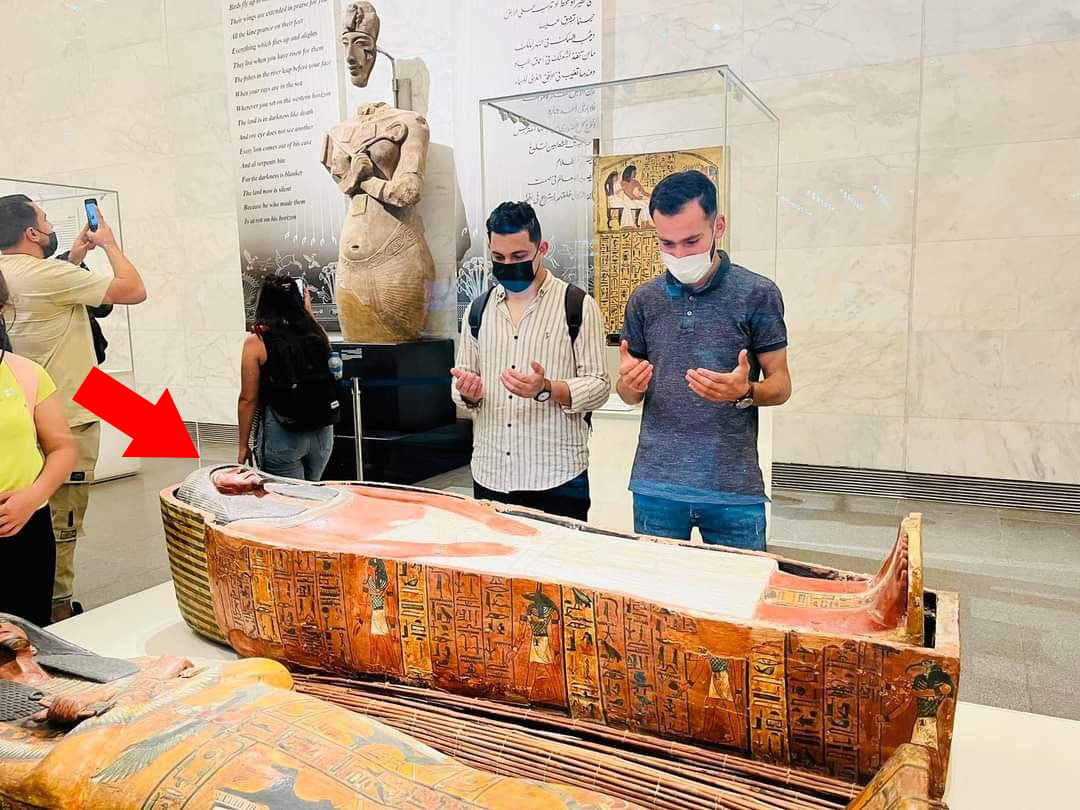 دراصل جو 2 نوجوان جس قبر کے آگے دعا کے لیے ہاتھ پھیلائے ہوئے ہیں وہ کوئی قبر نہیں بلکہ ممی باکس ہے جو مصر کے میوزیم میں رکھے ہوتے ہیں۔