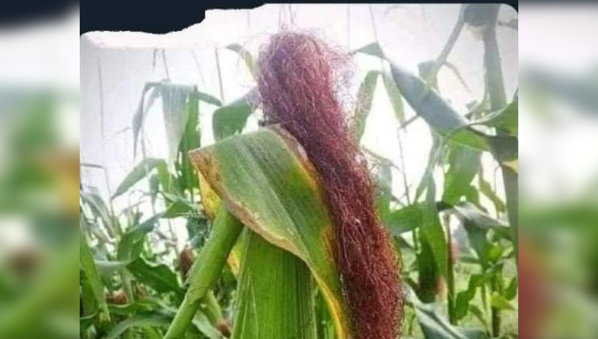یہ عجیب طرز کی پکچر کسی عورت کی لگتی ہے جو عقب سے کھینچی گئی ہے۔ لیکن غور سے دیکھنے کے بعد معلوم ہوتا ہے کہ یہ کوئی عورت نہیں بلکہ بھٹے کے بال ہیں لیکن ایسا محسوس ہورہا ہے کہ جیسے کسی عورت نے سبز ساڑھی پہن رکھی ہو۔