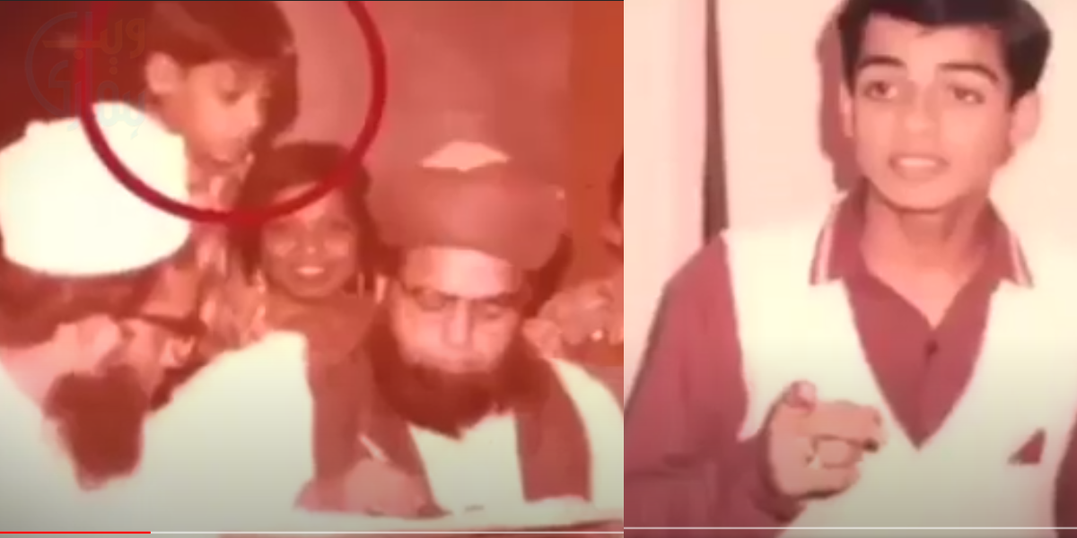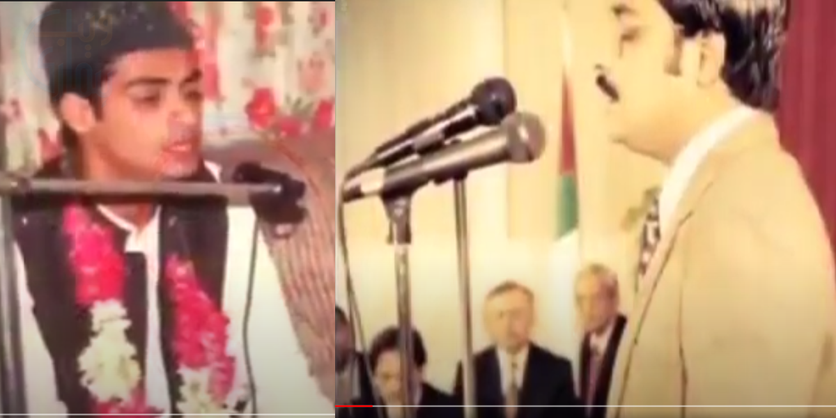 جبکہ دوسری تصویر میں عامر لیاقت حسین اپنی جوانی کے دور میں ہیں، جس میں وہ یونیفارم پہنے بڑے ہی پُر لفط انداز سے نعت پڑھ رہے ہیں، ان کی نعت کے انداز کو لوگ نہ صرف سننا پسند کرتے تھے بلکہ جذباتی بھی ہو جاتے تھے۔