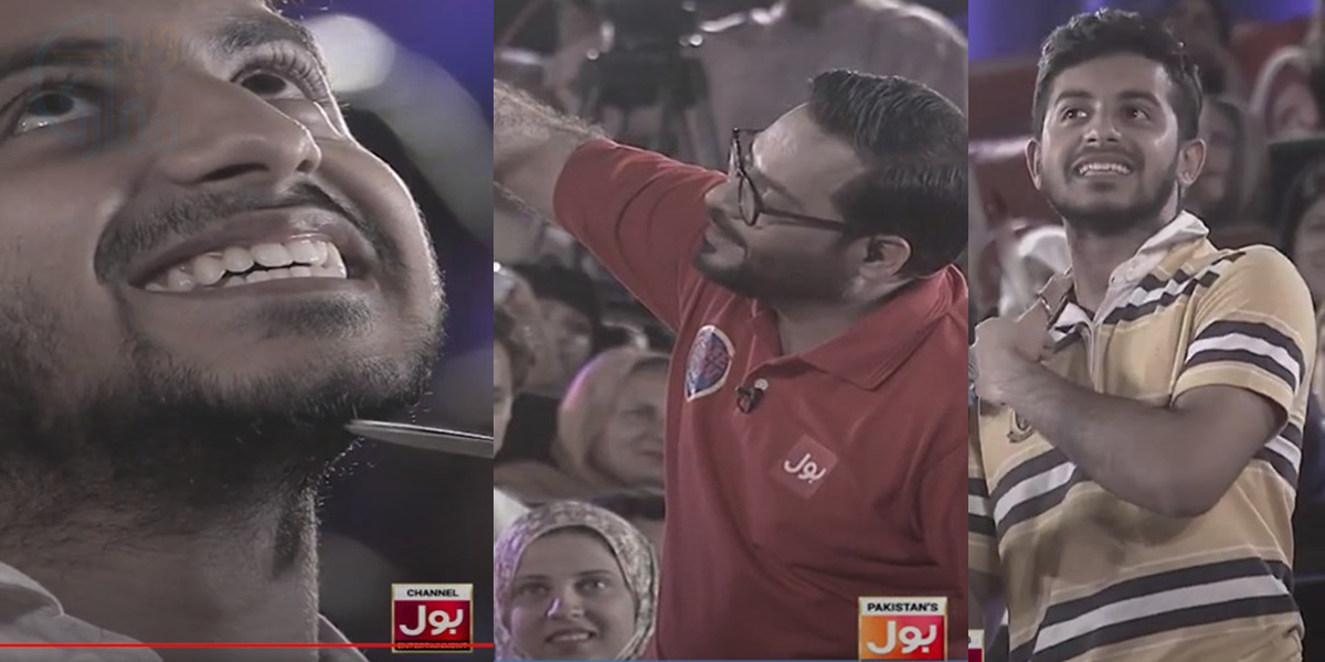 بول نیوز کے پروگرام گیم شو ایسے چلے گا میں عامر لیاقت حسین کے بیٹے احمد عامر بھی مدعو تھے، اپنے دلچسپ اور منفرد انداز سے کیے جانے والے سوالات کا نشانہ اس بار ان کے اپنے بیٹے بنے۔