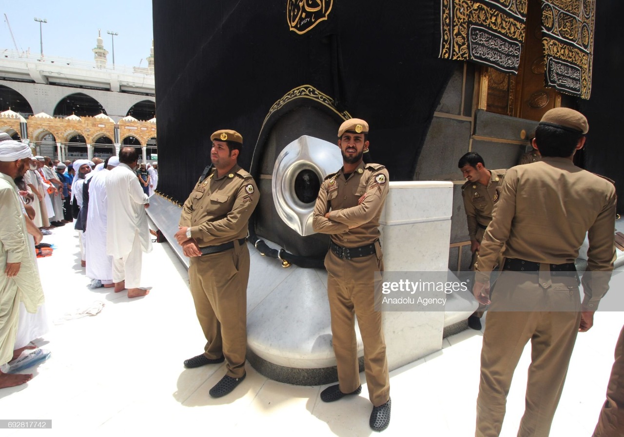 حجر اسود کی حفاظت کے لیے 24 گارڈ متعین ہیں جو ہر گھنٹے تبدیل ہوتے رہتے ہیں یعنی ہر گھنٹے ایک گارڈ حجر اسود یک حفاظت کے لیے مختص کیا گیا ہے۔ ایسا اس لیے بھی ہے تاکہ ہر گھنٹے بعد ایک تازہ دم سیکورٹی گارڈ حفاظت کرے۔