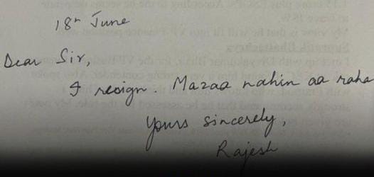 اس استعفے کے خط میں حضرت کوئی لگی لپٹی رکھنے کے بجائے سیدھا سیدھا کہہ رہے ہیں کہ سر میں تو استعفیٰ دے رہا ہوں کیونکہ مزا نہیں آرہا اور نیچے اپنا نام لکھ دیا۔ جانے یہ پڑھ کر ان کے باس پر کیا گزری ہوگی۔