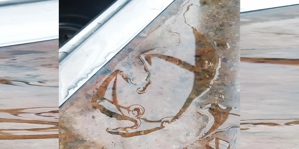 کسی نے درست موقع دیکھ کر یہ تصویر کیپچر کی ہے جب فرش پر پڑے پانی کی شکل وہیل مچھلی اِختیار کی گئی ہے۔