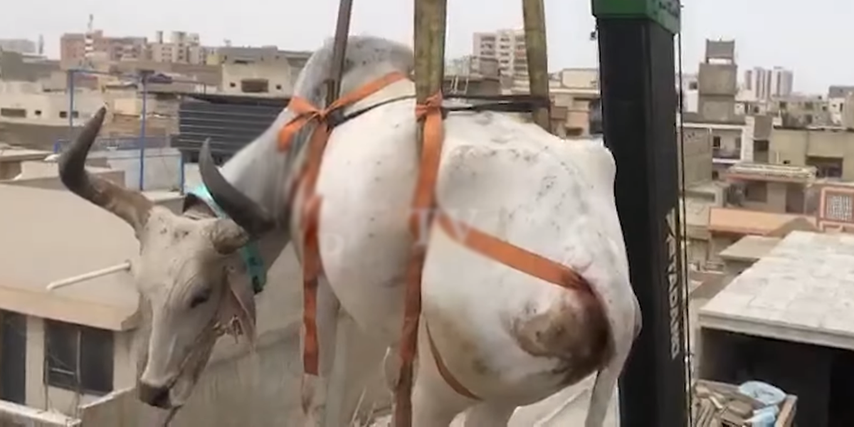 لیکن آج ہم جو ویڈیو آپ کو دکھانے والے ہیں وہ گائے بیل کے ساتھ پیش آنے والے حادثے کی نہیں بلکہ جن جانوروں کو با حفاظت چھتوں سے کرین کے ذریعے کامیابی کے ساتھ نیچے اتارا گیا، اور کس طرح قربانی کے جانوروں کو نیچے اتارا جاتا ہے وہ مناظر بھی ہم آپکو دکھائیں گے۔
