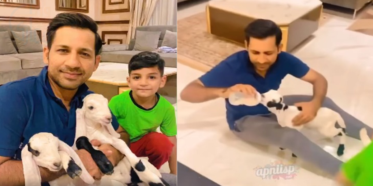پاکستانی ٹیم کے سابق کپتان سرفراز احمد اپنے دلچسپ انداز کی بدولت جانے جاتے ہیں لیکن ان دنوں ان کی ایک ویڈیو وائرل ہے جس میں وہ بکری کے بچے کو دودھ پلا رہے ہیں۔