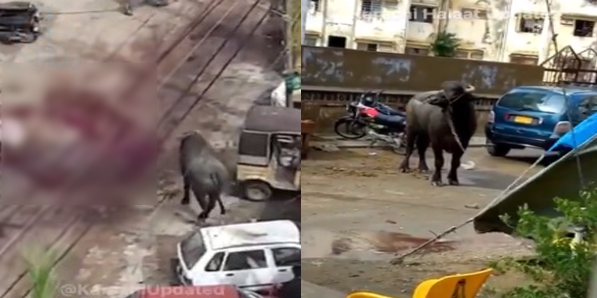 عید کے دوسرے دن دھوراجی کے علاقے میں نیشنل اسٹیڈیم کے پاس قربانی کے لیے لایا گیا بھینسا عین قربانی کے وقت آپے سے باہر ہو گیا۔