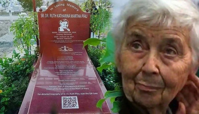 گورا قبرستان میں موجود یہ قبر انسانیت کی خدمت کرنے والی شخصیت ڈاکٹر رتھ فاؤ کی ہے، جو کہ 2017 میں 87 سال کی عمر میں انتقال کر گئی تھیں۔