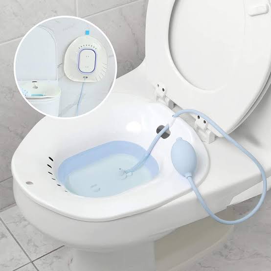 تصویر میں ٹوائلٹ میں لگا شاور دراصل پورا سیٹ ہے جس میں جسم کے نچلے حصے کو دھویا جاتا ہے۔ یہ سیٹ پورٹ ایبل سٹز باتھ کہلاتا ہے۔ اس کے مختلف انداز ہوتے ہیں جیسے کہ کسی میں شاور ہوتا ہے اور کسی میں پمپ۔ اس پر جسم کے نچلے حصے کے امراض، انفیکشن اور آپریشن کا شکار مریض فائدہ اٹھا سکتے ہیں۔ اس میں نیم گرم پانی کے ساتھ کوئی دوا یا نمک وغیرہ ڈال کر بیٹھ کر باتھ لیا جاتا ہے جس سے جراثیم اور امراض کا خاتمہ ہوتا ہے۔