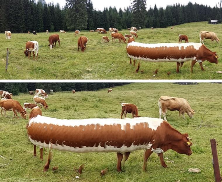 یقینا اس تصویر نے ہمارے دماغ کو پریشان کر دیا۔ تصویر میں موجود دکھائی دینے والی لمبی گائے دراصل لمبی نہیں بلکہ پینوراما (Panorama) شاٹ سے لی گئی ہے جس دوران گائے چل رہی ہے۔ یہی وجہ ہے کہ گائے کی اپنی جگہ سے حرکت کرنے کی وجہ سے یہ اتنی لمبی نظر آرہی ہے۔