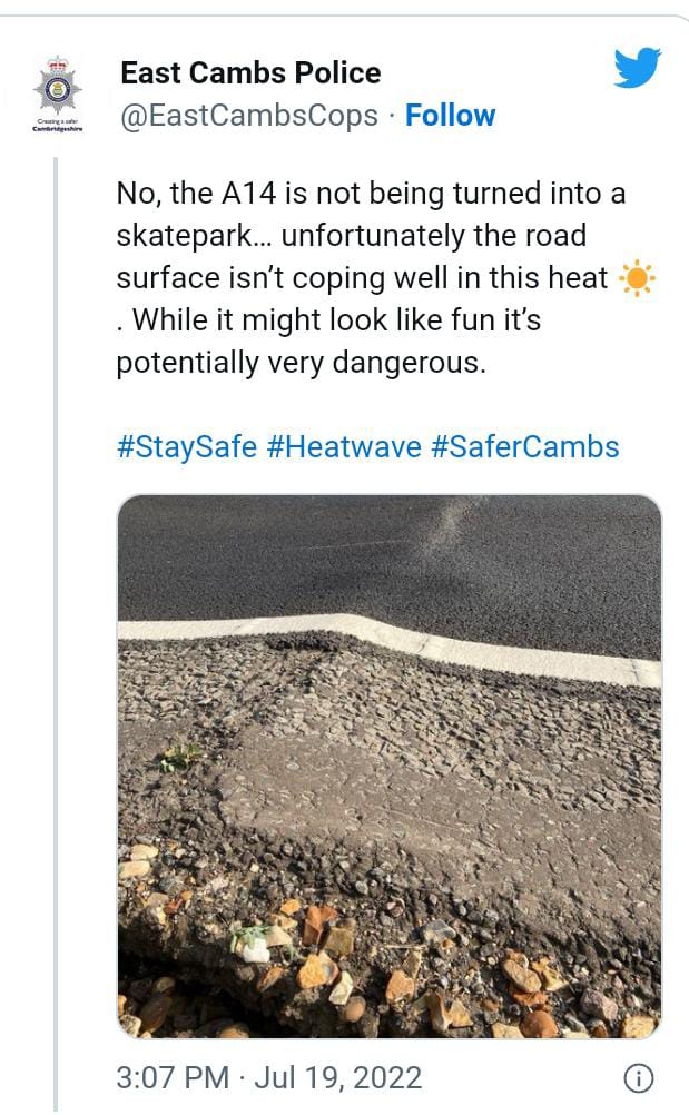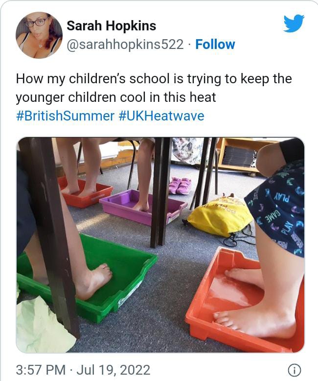 ٹائم ڈاٹ کام کے مطابق برطانیہ میں نصب تمام افرااسٹرکچر ٹھنڈے یا پھر کم درجہ حرارت کے حساب سے بنایا گیا ہے۔ برطانیہ کا درجہ حرارت عام طور پر 18 سے 25 ڈگری تک ہوتا ہے۔ اچانک 40 ڈگری تک گرم موسم وہاں کے انسانوں کے ساتھ ساتھ شہر کے انفرااسٹرکچر کے لئے بھی تباہ کن ہے۔ اسی وجہ سے وہاں کی سڑکیں، ٹریفک سگنلز کے علاوہ بسیں وغیرہ بھی تیز گرم ہورہی ہیں۔ اسکول کے بچے تپتی بسوں سے تلوؤں کو بچانے کے لئے پیر کے نیچے کچھ نہ کچھ رکھنے پر مجبور ہوگئے ہیں۔
