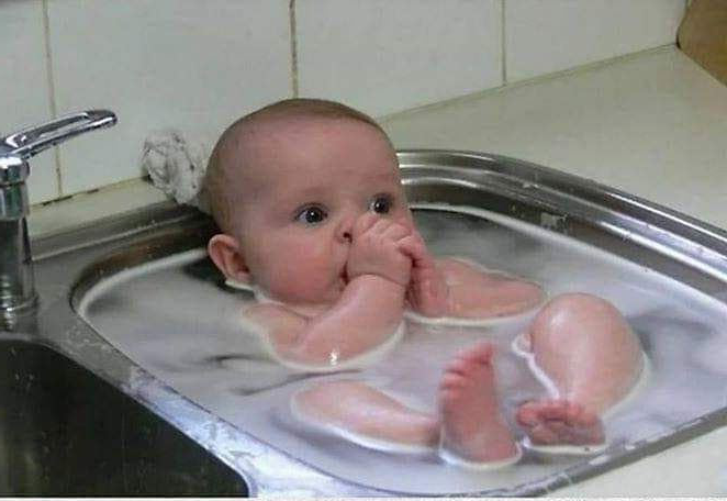 اس ننھے بچے کو سنک میں نہاتا دیکھ کر کسی کو پیار آجائے تو کوئی اپنی ہنسی نہ روک پائے۔