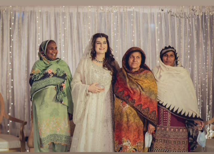 تقریب میں ہر کام پرفیکٹ رکھنے کے لئے تو نوکروں کو جھڑکیاں اور برا بھلا ضرور کہا جا رہا ہوتا ہے لیکن ہمیں یہ خیال کبھی نہیں آتا کہ ان کو بھی اسٹیج پر بلائیں دلہن یا دولہا کے ساتھ ان کی بھی تصویر کھنچوائیں۔ یہاں تصویرمیں ایک خوبصورت ہنستی مسکراتی دلہن اپنی میڈز(ماسیوں) کے ساتھ اپنی زندگی کے اس اہم ترین موقع کو انجوائے کر رہی ہے۔ تصویر دیکھیں تو اندازہ ہورہا ہے کہ وہ کتنی خوشی خوشی اپنی کام والیوں کے ساتھ کھڑی ہے، اور کام والیاں بھی خوش ہیں، ان کی خوشی مصنوعی نظر نہیں آتی جس سے پتہ چلتا ہے کہ ان کو بھی اس شادی کی اتنی ہی خوشی ہے جتنی کسی گھر والے کو ہو سکتی ہے۔