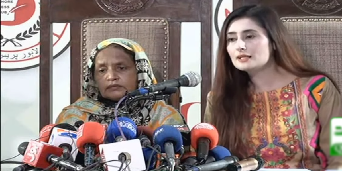 دعا زہرا کو ورغلا کر لاہور لے جانے والے ملزم ظہیر احمد کی والدہ نے ایک پریس کانفرنس میں دعا کے والدین سے معافی مانگ لی۔