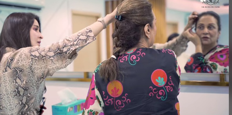 اسی حوالے سے بشرٰی انصاری بھی ان کے کلینک پہنچ گئیں اور انہوں نے بتایا کہ ان کی آئی بروز بہت ہلکی ہیں جو کہ دور سے نظر بھی نہیں آتیں تو ان کو وہ باقاعدہ بنانی پڑتی ہیں۔ اس لئے انہوں نے ڈاکٹر شائستہ کے کلینک سے مائیکرو بلیڈنگ ٹریٹمنٹ کروانے کا فیصلہ کیا جس سے ان کی پرمننٹ آئی بروز بنا دی جائیں گے۔ اس لئے وہ مائیکرو بلیڈنگ کروانے پہنچیں اور اپنی آئی بروز کا ٹریٹمنٹ کروایا۔ اس ٹریٹمنٹ میں آپ جیسی چاہیں اور جتنی چاہیں اپنی مرضی کے شیپ میں آئی بروز بڑھوا سکتے ہیں، یہ ایک طرح کا پرمننٹ کلر ہے جو کہ کھال کے اندر کر دیا جاتا ہے اور پھر آپ کو باربار پینسل سے یا کلر سے آئی برو کو بنانا نہیں پڑتا۔ آپ کا اس ٹریٹمنٹ کے بارے میں کیا خیال ہے؟