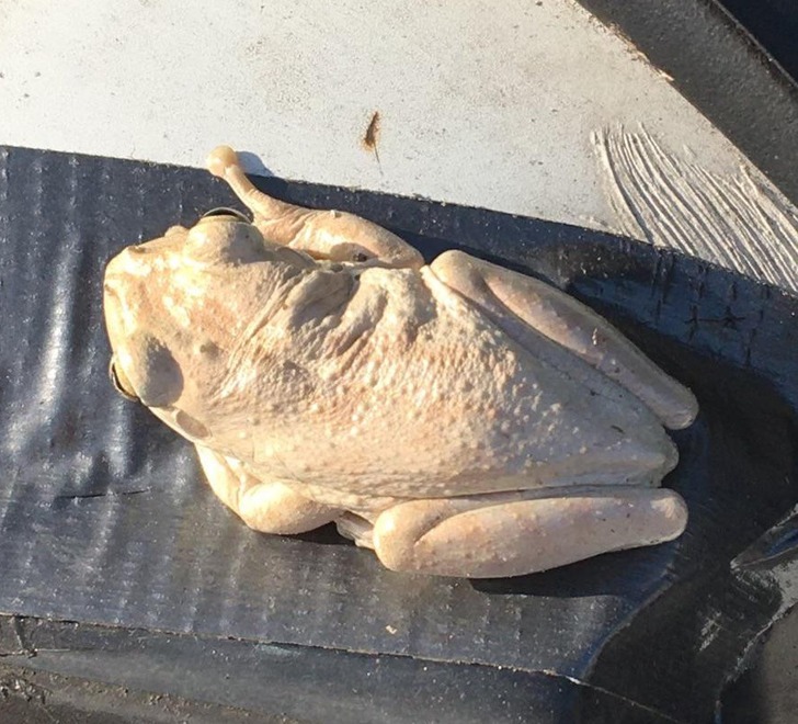 سفید مینڈک کو دیکھ کر ایسا لگتا ہے جیسا کسی نے ابلی ہوئی مرغی ہی رکھ دی ہو لیکن بڑی بڑی آنکھیں یہ بتانے کے لئے کافی ہیں کہ یہ صاحب مینڈک ہیں۔