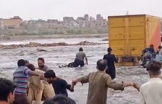 سیلابی ریلے کا دباؤ اس قدر تھا کہ ٹریفک پولیس نے روڈ کو ٹریفک کے لیے بھی بند کر دیا، تاہم ایدھی کے رضاکاروں نے موقع پر پہنچ کر بیشتر افراد کو بچا لیا۔