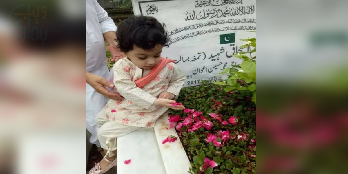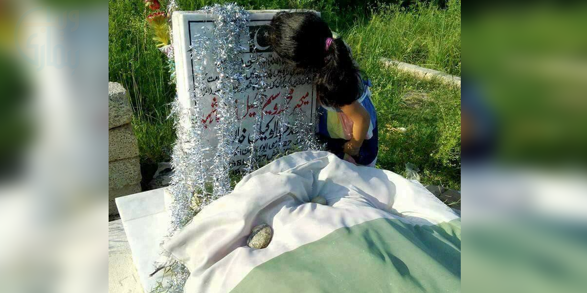 شہید کی بیٹی نہ صرف والد کی قبر پر جا کر ان کی قبر کا خیال رکھتی ہے بلکہ کتبے کو بھی چومتی ہیں۔ پاکستان کے جھنڈے میں لپٹی قبر کو نہ صرف بیٹی صاف رکھتی ہیں بلکہ دعا بھی کرتی ہیں۔