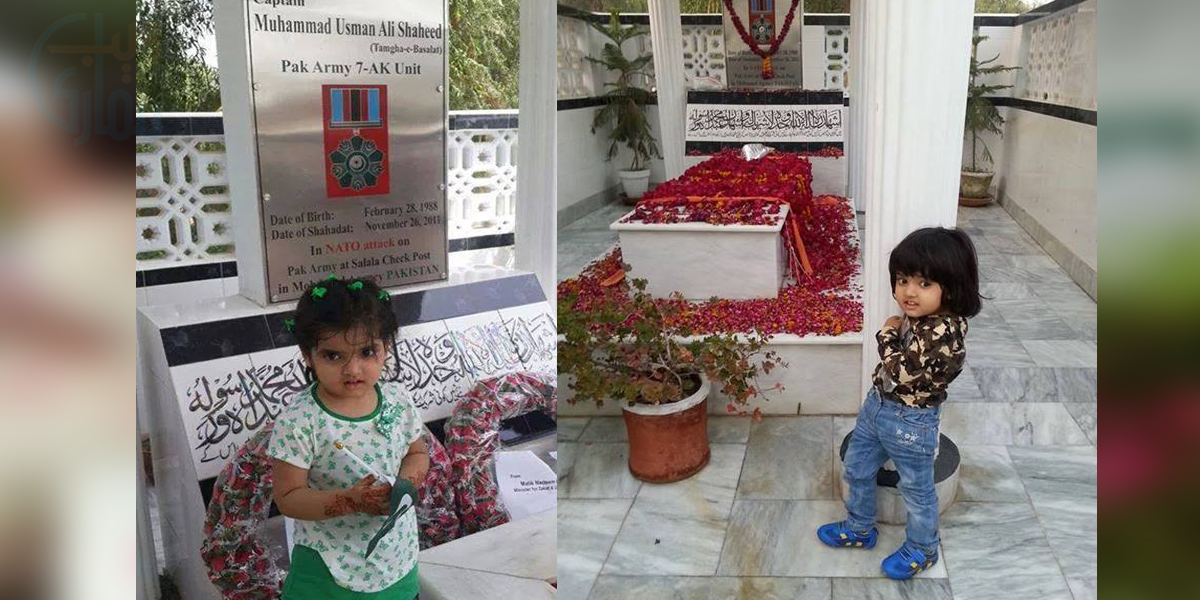 شہید والد کی قبر پر تینوں بیٹیاں نہ صرف آ کر دعا کرتی ہیں بلکہ والد سے اپنی محبت کا بھی اظہار کرتی ہیں، اپنے ننھے ننھے ہاتھوں سے قبر صاف بھی کرتی ہیں اور قبر کے کتبے کو چومتی بھی ہیں، ننھی پریوں کی والد سے محبت پاکستانیوں کی آنکھوں میں نہ صرف آنسو لا رہی ہیں بلکہ دل بھی چلھنی کر رہی ہیں۔