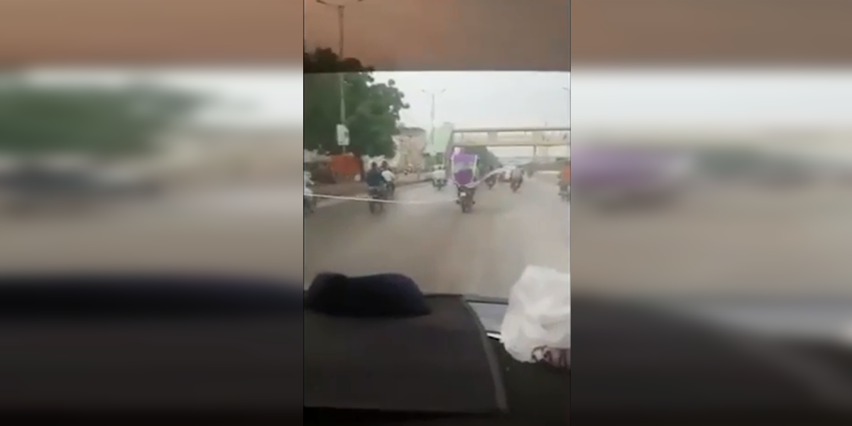 وائرل ویڈیو میں شہری کو دیکھا جاسکتا ہے کہ اس نے بارش سے بچنے کے لیے منفرد حل ڈھونڈتے ہوئے اپنے اوپر چھتری نصب کرلی ہے جس کی ویڈیو ایک کار سوار نے موقع پر بنا کر سوشل میڈیا پر اپلوڈ کردی ہے۔