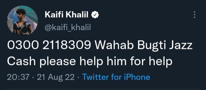 لیکن ساتھ ہی کوک اسٹوڈیو میں ان کے ساتھ گانے والے گلوکار کیف خلیل نے ایک پوسٹ اپلوڈ کی جس میں کیف نے وہاب بگٹی کا رابطہ نمبر بھی شئیر کیا تاکہ اگر کوئی گلوکار کی مدد کرنا چاہے تو فورا رابطہ کر کے اس مشکل گھڑی میں اپنے بھائی کا سہارا بن سکے۔