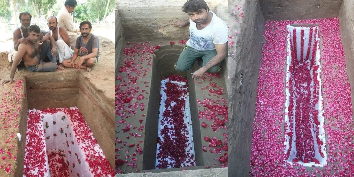 سوشل میڈیا پر ایک پوسٹ کافی وائرل ہو چکا ہے، جس میں قبر بنانے والے گورکنوں نے سب کی توجہ حاصل کی، مٹی کی ان قبروں کو جو غالبا کسی جنازے کی راہ تک رہی تھی، کو گلاب کی پتیوں سے سجایا گیا تھا۔