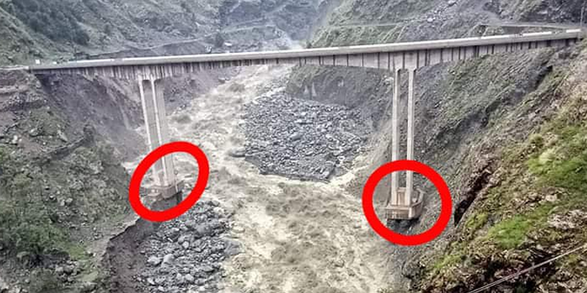 تحصیل پٹن اور داسو کے درمیان بنے اس پل کے دونوں ستونوں کی بنیادیں کھوکھلی اور کمزور ہو گئی ہیں۔