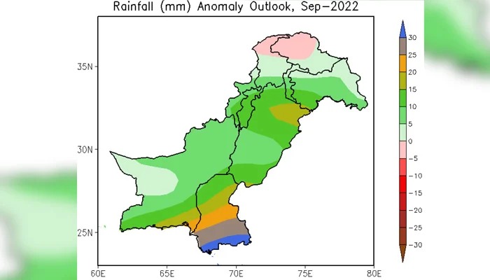 پاکستان میٹیرو لوجیکل ڈپارٹمنٹ کی جانب سے ستمبر کے حوالے سے خبردار کر دیا ہے۔ محکمہ موسمیات کا کہنا ہے کہ ستمبر کے مہینے میں سندھ اور شمال مشرقی پنجاب میں معمول سے زیادہ بارش کی پیشن گوئی کی گئی ہے۔ جبکہ بلوچستان، کے پی پنجاب کے کچھ علاقے اور آزاد کشمیر میں معمول کے مطابق بارش کا امکان ہے۔