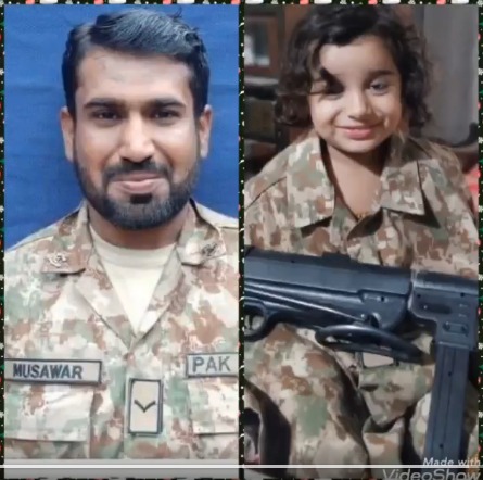 ان کی بیٹی ابھی اتنی بڑی بھی نہیں ہیں کہ اس دنیا کی حقیقت کو سمجھ سکیں لیکن والد کی شہادت اور ان سے محبت کو خوب پہچان جاتی ہیں، والد کے یونیفارم میں بیٹی کی ایک ویڈیو وائرل ہے، جس میں ننھی پری والد کا یونیفارم پہنے مسکرا رہی ہے۔