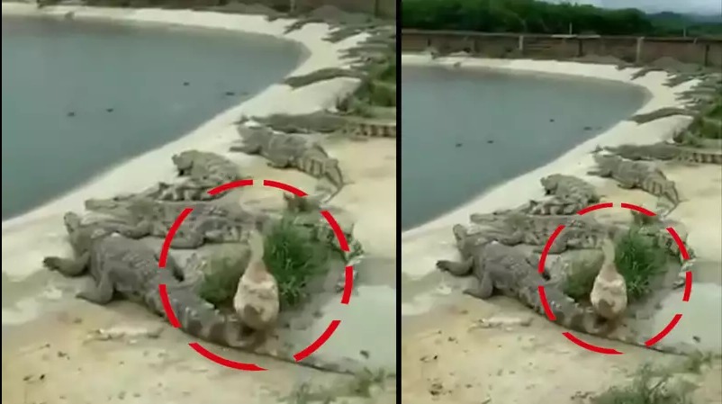 سوشل میڈیا پر ایک ویڈیو کافی وائرل ہے جس میں ایک بطخ کو دیکھا جا سکتا ہے جو کہ مگرمچھوں کے درمیان موجود ہے۔