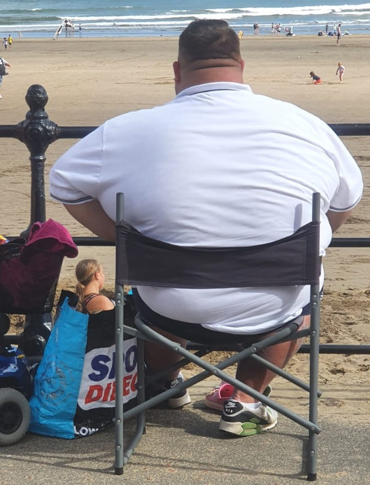 یہ بچہ کسی دیو کی گرفت میں نہیں بلکہ ایک لحیم شہیم آدمی کی گود میں بیٹھے بیٹھے گھٹنے پر جھک گیا ہے۔