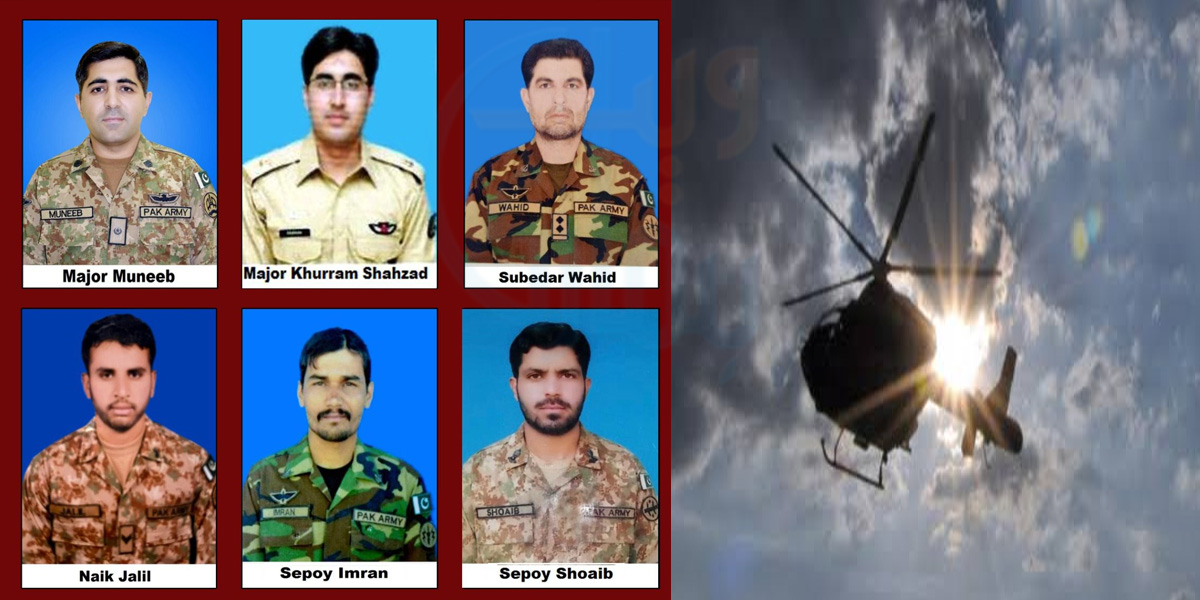 حادثے میں 2 پائلٹس سمیت ہیلی کاپٹر میں سوار تمام 6 فوجی اہلکار شہید ہو گئے۔