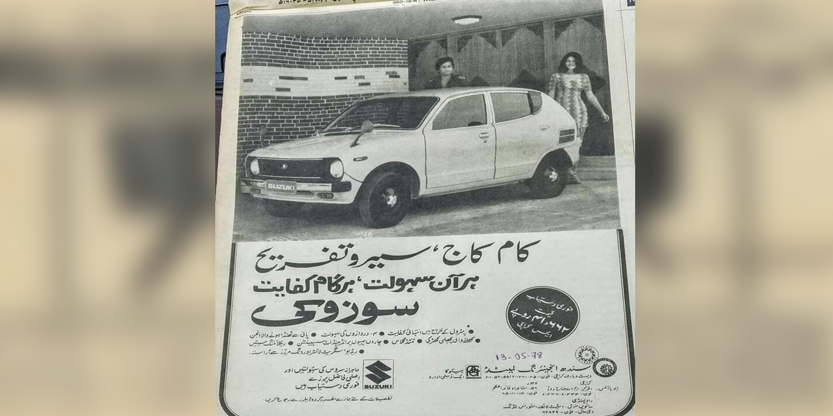 1978 میں پھر ایک ایسی گاڑی کا ماڈل بھی آیا جس نے سب کی توجہ حاصل کر لی۔ منفرد ڈیزائن کی اس گاڑی کی قیمت 41 ہزار روپے تھی۔ سوزوکی کے اس ماڈل کو اس زمانے کے جدید ماڈلز میں شمار کیا جاتا تھا۔
