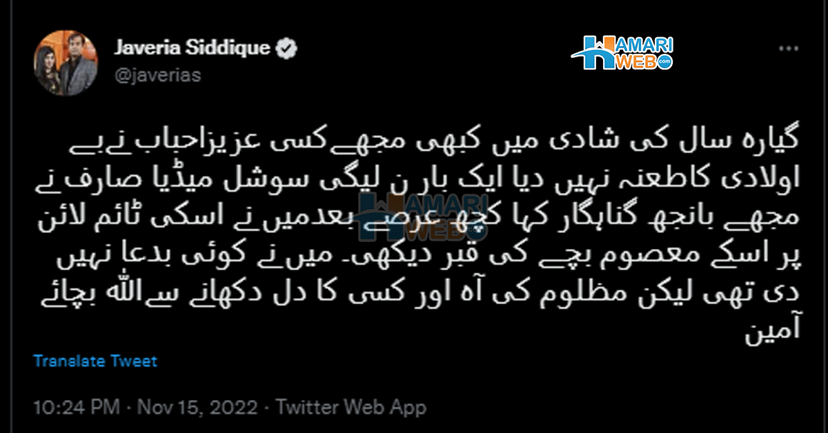 ٹوئیٹ میں جویریہ نے لکھا ہے کہ: