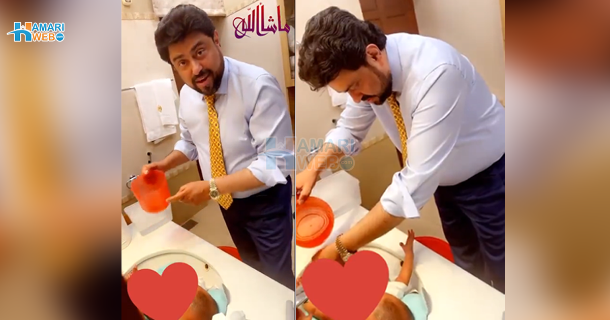 گورنر سندھ کامران ٹیسوری نے ٹوئٹر پر ایک ویڈیو پوسٹ جاری کی جس میں انہیں اپنے ایک ماہ کے بچے کو ایک سنک میں نہلاتے ہوئے دکھایا گیا ہے جب کہ بچے کے چہرے پر دل کی شکل والے ایموجی کا احاطہ کیا گیا ہے۔