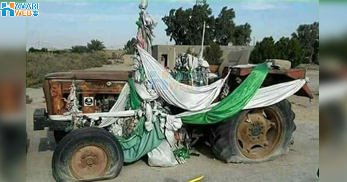 وہ کپڑا جو عام طور پر مزاروں پر رکھا جاتا ہے، وہ اسی ٹریکٹر پر رکھا گیا ہے، ساتھ ہی ایک ڈنڈا بھی لگایا ہے، جس پر ڈوریاں باندھی گئی ہیں۔