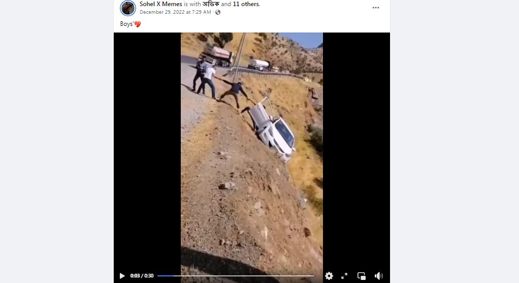 ہوا کچھ یوں کہ خلیجی ریاست کی ممکنہ سڑک معلوم ہونے والی اس ویڈیو میں دیکھا جا سکتا ہے کہ سفید کار کھائی میں گرنے والی تھی جب کہ آس پاس لوگ گاڑی میں موجود ایک شخص کو باہر نکالنے کی کوشش کر رہے تھے۔