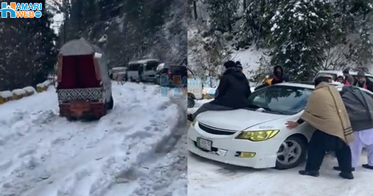 سوشل میڈیا پر ایک ایسی ہی ویڈیو نے سب کی توجہ حاصل کر لی ہے، جس میں برف باری کے دوران ٹریفک کی روانی تو متاثر ہو ہی رہی ہے، ساتھ ہی شہریوں اور سیاحوں کو بھی شدید تکلیف کا سامنا ہے۔