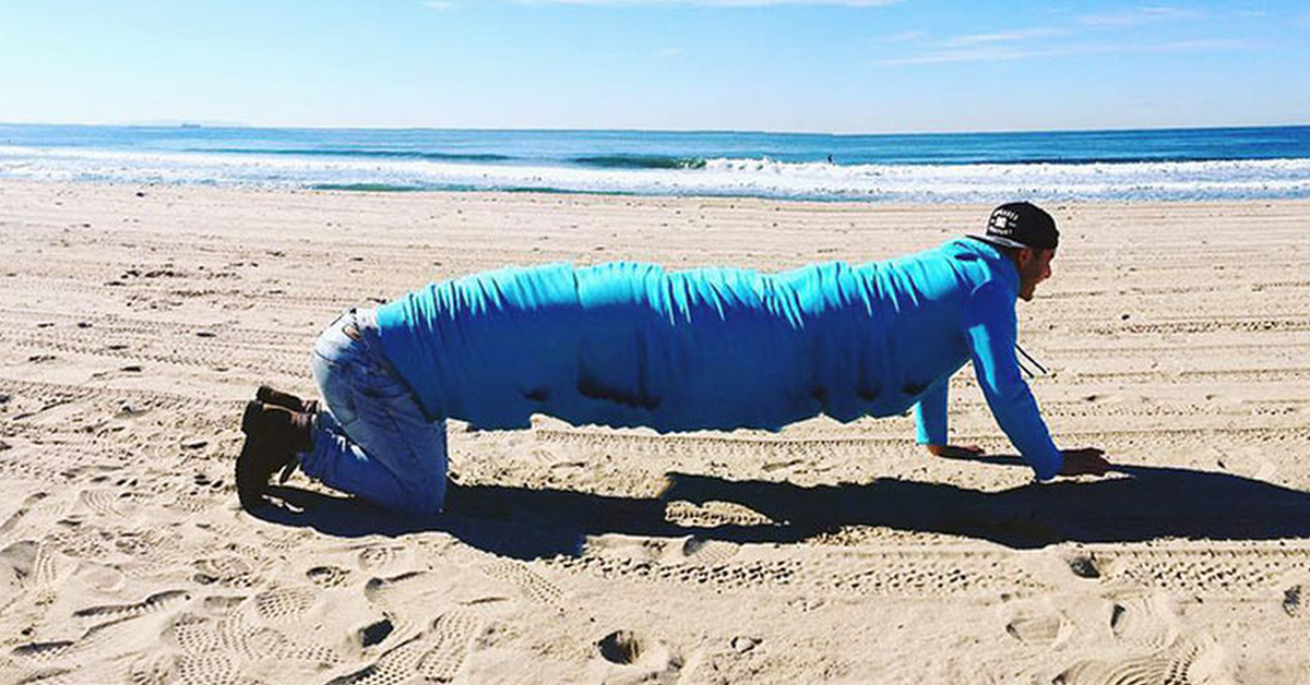 یہ تصویر بھی پینوراما شاٹ کی مہارت سے وائرل ہوئی ہے۔ نوجوان تو اپنی جگہ موجود ہی ہے مگر اس کا جسم ایسا نظر آرہا ہے جیسے ایک بنمانس کا ہوتا ہے۔ یہ تصویر مزاحیہ طرز کی نظر آتی ہے۔