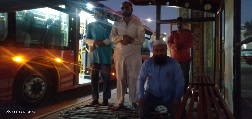 پل کے نیچے جب بس رکی تو مسافروں کو لگا کہ شاید بس اسٹاپ ہے، تاہم بس ڈرائیور اور کنڈیکٹر اچانک بس سے جلد بازی میں اتر گئے، تو مسافر بھی ڈر گئے، لیکن جیسے ہی بس سے باہر منہ نکال کر دیکھا تو بس ڈرائیور اور کنڈیکٹر دونوں نماز پڑھنے میں مگن ہیں۔