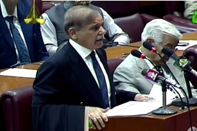 منگل کو قومی اسمبلی کے اجلاس سے خطاب کرتے ہوئے شہباز شریف نے کہا کہ ’حقائق اور سچائی کو سامنے لایا جانا ضروری ہے۔‘وزیراعظم نے چیف جسٹس سے ’گزارش‘ کی ہے کہ ’سپریم کورٹ کے ایک جج کی حال ہی میں سامنے آنے والی آڈیو کا فرانزک کرایا جائے۔‘انہوں نے یہ بھی کہا کہ ’سیاست دانوں کے خلاف اگر کرپشن کا کوئی مقدمہ ہو تو اسے فوراً عدالتوں کے سامنے جانا ہوتا ہے۔ لیکن ’اس ملک میں کتنے جج حضرات کے خلاف کرپشن پر کارروائی ہوئی ہے؟ جو تین چار نام سامنے آتے ہیں انہیں انگلیوں پر گنا جا سکتا ہے۔‘ وزیراعظم شہباز شریف نے کہا ہے کہ ’عمران خان نے امریکی سازش کے بیان سے قلابازی کھائی اور کہا کہ کوئی امریکی سازش نہیں تھی۔ ایسا ٹوپی ڈرامہ تاریخ میں شاید ہی کسی نے کا ہو۔‘انہوں نے کہا کہ ’جب تک جو شخص آئین کو نہ مانے اس کے ساتھ بات نہیں ہو سکتی۔ عمران خان جب تک آ کر پوری قوم سے اپنے ’گناہوں‘ کی معافی نہیں مانگتے، ان سے بات نہیں ہو سکتی۔‘’جو تباہی خارجہ محاذ پر اس شخص(عمران خان) نے کی ہے، وہ میں بیان نہیں کر سکتا۔ اب اسی عمران نیازی نے امریکہ لاکھوں ڈالرز میں لابنگ کمپنیاں ہائیر کر لی ہیں۔ وہ پاکستان کے خلاف وہاں سے کیا کیا بیان دلوا رہے ہیں۔ انہیں کوئی حق نہیں کہ یہ غیرملکی سفیروں سے ملیں اور پاکستان کے خلاف بات کریں۔‘وزیراعظم شہباز شریف نے آرمی چیف کا ذکر کرتے ہوئے کہا کہ ’آرمی چیف کو مقرر کرنا وزیراعظم کا اختیار ہے۔ دراصل یہ کابینہ کا فیصلہ ہوتا ہے۔ ہم نے کابینہ کے فیصلے سے جنرل عاصم منیر کو آرمی چیف اور جنرل ساحر شمشاد کو جوائنٹ چیفس آف سٹاف بنایا۔ یہ 100 فیصد میرٹ پر فیصلہ تھا۔‘انہوں نے کہا کہ ’آج پی ٹی آئی کے ٹرولز باہر سے بیٹھ کر فوج کی قیادت کے خلاف جو زبان استعمال کر رہے ہیں۔ ایسا پاکستان کی 75سالہ تاریخ میں نہیں ہوا۔‘شہباز شریف نے کہا کہ ’عمران خان کے گھر میں دہشت گرد دندناتے پھرتے ہیں۔ وہاں سے قانون نافذ کرنے والے اداروں پر پیٹرول بم پھینکے گئے۔ ان انہیں ضمانتیں مل رہی ہیں۔ اسے کوئی پوچھنے والا نہیں ہے۔‘وزیرِ اعظم کا خطاب تین موضوعات پر مرکوز رہا: ملک کی سیاسی صورتِ حال، فوج اور آرمی چیف کے خلاف سوشل میڈیا پر چلنے والے منفی ٹرینڈز اور عدلیہ کی جانب سے حالیہ زمانے میں کیے جانے والے فیصلے، خاص طور پر وہ مقدمے جن میں سابق وزیرِاعظم عمران خان کو ضمانت ملی ہے۔ وزیرِ اعظم نے ایک بار پھر مذاکرت اور بات چیت کی اہمیت کا ذکر کیا اور کہا کہ ’اگر معاملات ایسے ہی رہے تو ملک کا مستقبل تاریک ہو جائے اور حالات کسی کے قابو میں نہیں آئیں گے۔‘انھوں کہا کہ ’وقت ہے کہا اجتماعی دانش سے ملک کے مسائل کا حل تلاش کیا جائے۔‘نئی قانون سازی کے لیے قومی اسمبلی میں بحثوزیراعظم کے خطاب کے بعد سپیکر اسمبلی راجہ پرویز اشرف نے موجودہ صورتحال میں قانون سازی کے حوالے سے رکن اسمبلی مرتضیٰ جاوید عباسی کو قراردار پیش کرنے کی اجازت دی۔ایوان نے مرتضیٰ جاوید عباسی کی قرارداد منظور کر لی کہ ایوان ملک کی موجودہ صورت حال اور اس کے نتیجے میں پیدا ہونے والے آئینی و قانونی سوالات پر بحث کرے۔
