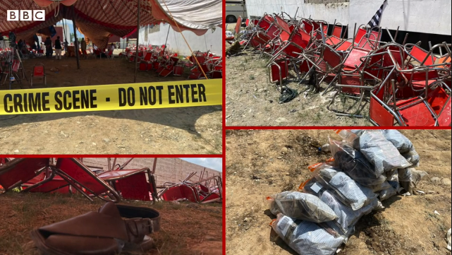 ایک چھوٹا سا سٹیج تھا، جس پر سادہ سی کرسیاں رکھی گئی تھیں سٹیج کے بالکل سامنے جگہ پر دھماکہ ہوا تھا لیکن وہاں کوئی گڑھا نہیں تھا۔