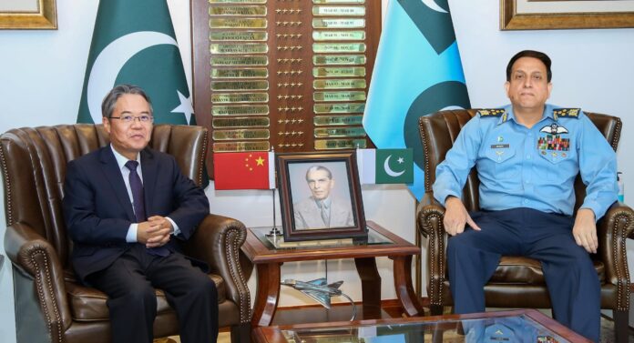 ترجمان پاک فضائیہ کے مطابق ایئر چیف نے معزز مہمان کو پاک فضائیہ کو ‘نیکسٹ جنریشن ایئر فورس’ بنانے کے اپنے وژن سے آگاہ کیا جس میں پاک فضائیہ کو جدید خطوط پر استوار کرنے کے لیئے خاص طور پر خود انحصاری کے فروغ، نیش ٹیکنالوجیز کے حصول اور تربیتی شعبے کی اصلاح کے منصوبے شامل ہیں۔ دونوں ممالک کے مابین دیرینہ تزویراتی شراکت داری کی اہمیت کو اجاگر کرتے ہوئے ایئر چیف نے پاک فضائیہ کی جانب سے چین کے ساتھ انسانی وسائل اور تکنیکی شعبے سمیت ہوا بازی کی صنعت میں موجودہ تعاون کو مزید فروغ دینے کی خواہش کا اظہار کیا تاکہ مشترکہ سیکیورٹی چیلنجز سے مل کر نمٹا جا سکے۔انہوں نے کہا کہ پاکستان، چین کے ساتھ اپنے مضبوط سفارتی، اقتصادی و دفاعی تعلقات اور آزمائش کی ہر گھڑی میں پاک چین بے مثال دوستی کو قدر کی نگاہ سے دیکھتا ہے جو علاقائی امن، سلامتی اور استحکام سے متعلق تمام اہم امور میں ہم آہنگی پر مبنی ہیں۔معزز مہمان نے علاقائی امن کے فروغ کے لیے پاکستان کی کوششوں کی تعریف کی اور خطے میں طاقت کے توازن کو یقینی بنانے کے پاک فضائیہ کی قیادت کے عزم اور اس مقصد کے لیئے اسکی جانب سے اٹھائے گئے اقدامات کو سراہا۔ معززین نے سائبر، اسپیس اور الیکٹرانک وارفیئر جیسے شعبوں میں جدید ترین نیش ٹیکنالوجیز کی شمولیت پر توجہ مرکوز رکھتے ہوئے پاکستان اور چین کی فضائی افواج کے مابین تعاون کو مزید وسعت دینے پر اتفاق کیا۔انہوں نے مشترکہ اور کثیر الملکی آپریشنل فضائی مشقوں کو فروغ دینے کے عزم کا بھی اظہار کیا جن کے انعقاد سے خطے میں نئے ابھرتے ہوئے خطرات سے نمٹنے کے لیے مربوط جوابی کارروائیوں کو تقویت دی جا سکے گی۔چینی سفیر اور سربراہ پاک فضائیہ کے درمیان یہ ملاقات دونوں ممالک کی جانب سے باہمی اتفاق رائے اور فوجی تعاون کے ذریعے اپنی تزویراتی شراکت داری کو مستحکم کرنے کے پختہ عزم کا منہ بولتا ثبوت ہے۔