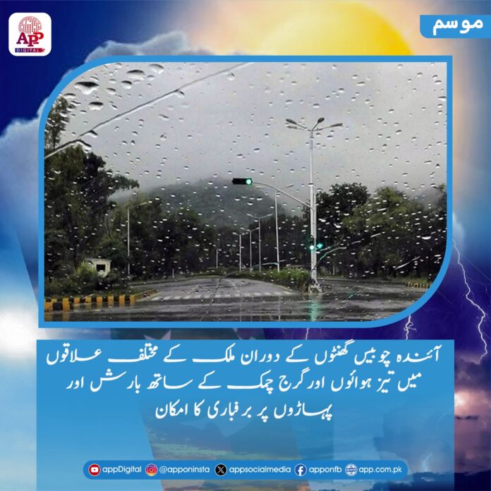 اسلام آباد۔26فروری (اے پی پی):آئندہ چوبیس گھنٹوں کے دوران ملک کے مختلف علاقوں میں تیز ہوائوں اورگرج چمک کے ساتھ بارش اور پہاڑوں پر برفباری کا امکان ہے۔ شمالی بلوچستان میں برفباری سے سڑکیں بند اور گاڑیوں کی آمد ورفت میں خلل جبکہ گوادر، کیچ، پنجگور اور آواران میں موسلادھار بارش کے باعث مقامی ندی نالوں میں طغیانی کا بھی خدشہ ہے۔ مری، گلیات، ناران، کاغان، دیر، سوات، کوہستان، مانسہرہ، ایبٹ آباد، شانگلہ، استور، ہنزہ، سکردو، وادی نیلم، باغ، پونچھ اور حویلی میں برفباری سے گاڑیوں کی آمد ورفت میں خلل کا امکان ہے۔
