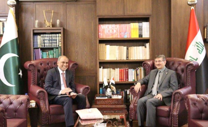 اسلام آباد۔2مارچ (اے پی پی):منیجنگ ڈائریکٹر پاکستان بیت المال سید طارق محمود الحسن نے اسلام آباد میں عراق کے سفیر حامد عباس لافطہ کی خصوصی دعوت پر عراقی سفارت خانے کا دورہ کیا جہاں عراقی سفیر نے انکا پرتپاک خیر مقدم کیا۔ عراقی سفیر نے سید طارق محمود الحسن کو منیجنگ ڈائریکٹر پاکستان بیت المال کا عہدہ سنبھالنے پر مبارکباد دی۔ ایم ڈی بیت المال نے سماجی شعبوں میں عراقی سفارتخانے کی دلچسپی کو سراہا اور مل کر کام کرنے کے عزم کا اظہار کیا۔