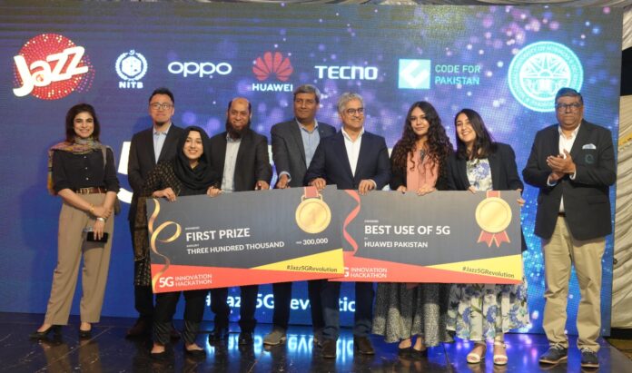 کوڈ فار پاکستان (سی ایف پی)نے عملدرآمدی جبکہ ہواوے نے ہیکا تھون میں اور ٹیکنالوجی پارٹنرز کا کردار ادا کیا۔جتینے والی ٹیم نے فائیو جی سے چلنے والے جدید ہیلتھ مانیٹرنگ سسٹم پر شاندارپراجیکٹ پیش کیا جو وائی فائی سنگنلز، بالخصوص چینل اسٹیٹ انفارمیشن (سی ایس آئی) ڈیٹا سے بھرپور استفادہ کرتے ہوئے نقائص کی درست نشاندہی اور دل کے دھڑکنے اور سانس لینے کی شرح کا تجزیہ فراہم کرتا ہے۔غلام اسحاق خان انسٹی ٹیوٹ آف انجینئرنگ سائنسز اینڈ ٹیکنالوجی (جی آئی کے آئی) کی ٹیم ”سیلولر وی ٹو ایکس انہاسمنٹ نے ہیکاتھون میں دوسری پوزیشن حاصل کی۔ ٹیم نے گاڑیوں کو فائیوجی نیٹ ورک سے منسلک کرتے ہوئے ٹریفک مینجمنٹ سسٹمز اور پیدل چلنے والوں کے درمیان جدید مواصلات کو فروغ دینے کے لئے پراجیکٹ پیش کیا۔جاز کے سی ای او عامر ابراہیم نے ہیکاتھون کی کامیابی پر اظہار خیال کرتے ہوئے کہاکہ پاکستان کے پہلے فائیو جی انوویشن ہیکاتھون کا کامیاب اختتام لاکھوں پاکستانیوں کی زندگیوں پر مثبت اثرات مرتب کرنے اور ان کے روزگار کو بہتر بنانے کیلئے ٹیکنالوجی سے استفادہ کرنے کے ہمارے سفر میں ایک نمایاں سنگ میل ہے،اس طرح کے اقدامات کے ذریعے ہم پاکستان کے باصلاحیت نوجوانوں کو جدت کے فروغ اور ہمارے معاشرے کو درپیش چیلنجز سے نمٹنے کیلئے بااختیار بنانا چاہتے ہیں۔نیشنل انفارمیشن ٹیکنالوجی بورڈ(این آئی ٹی بی) کے سی ای او بابر مجید بھٹی نے اس موقع پر گفتگو کرتے ہوئے کہا کہ پاکستان کے ڈیجیٹل مستقبل کیلئے فائیو جی انوویشن ہیکا تھون جیسے اقدامات بنیادی حیثیت رکھتے ہیں۔انہوں نے کہاکہ فائیو جی ٹیکنالوجی سے استفادہ اور جدت کے فروغ کے ذریعے ہم چیلنجز سے نمٹنے کے ساتھ ساتھ ترقی اور خوشحالی کیلئے نئے مواقع پیدا کرسکتے ہیں۔پی ٹی اے کے چیئرمین میجر جنرل (ر) حفیظ الرحمن نے اس موقع پر بات چیت کرتے ہوئے کہاکہ فائیو جی ہیکاتھون ڈیجیٹل مستقبل کے راستے پر پاکستان کو گامزن کرنے کیلئے اشتراک اور جدت کی اہمیت کو اجاگر کرتی ہے۔ اس طرح کے پروگرام نہ صرف تخلیقی صلاحیتوں کو فروغ دیتے ہیں بلکہ آگاہی بھی فراہم کرتے ہیں جو پالیسی کی تشکیل میں بہتر فیصلہ سازی اور جدید ٹیکنالوجیز کو اپنانے میں معاون ثابت ہوسکتے ہیں۔یہ ایوارڈز جاز کی طرف سے دسمبر2012میں قائم کی گئی پاکستان کی پہلی فائیو جی انوویشن لیب میں انڈسٹری لیڈرز اور موضوع کے ماہرین کی زیر سرپرستی اور زیر نگرانی دو ماہ کی تربیت کا نتیجہ ہیں۔مجموعی طور پر 370 امیدواروں میں سے فاسٹ نیوسس، اسلام آباد، پی این ای سی نسٹ، کراچی، اسلام آباد سے تعلق رکھنے والے طلبا و طلبات، جی آئی کے آئی صوابی، نیشنل سائنس اور ٹیکنالوجی پارک (این ایس ٹی پی) اور یو ای ٹی پشاور پر مشتمل چھ فائنلسٹ ٹیموں کو ہیکا تھون میں جدت پر مبنی پراجیکٹ پیش کرنے کیلئے شارٹ لسٹ کیا گیا۔ایونٹ میں ملک کے مختلف شعبوں میں فائیو جی ٹیکنالوجی کے ذریعے انقلاب لانے کے لئے متعدد جدید منصوبوں کی نمائش کی گئی۔