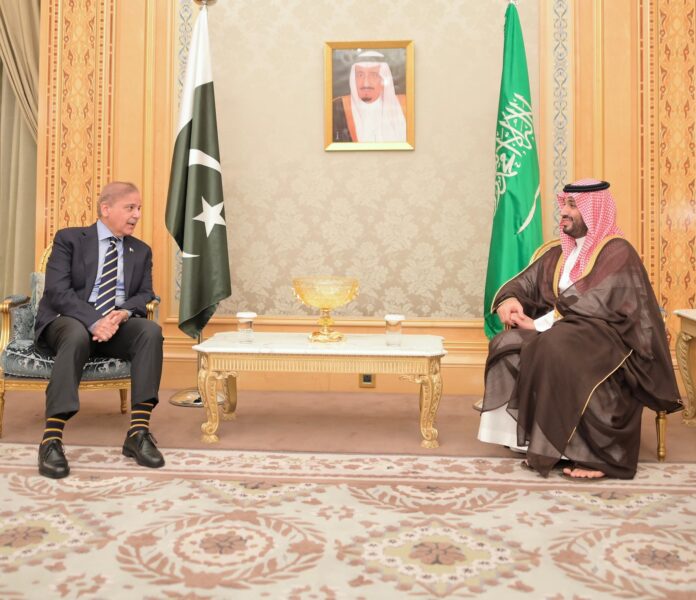 ریاض۔30اپریل (اے پی پی):وزیراعظم شہباز شریف نے سعودی ولی عہد اور وزیر اعظم محمد بن سلمان آل سعود سے پیر کو یہاں ملاقات کی، دونوں رہنماؤں نے مکہ مکرمہ میں ہونے والی اپنی ملاقات میں کئے گئے فیصلوں پر پیشرفت پر اطمینان کا اظہار کیا۔