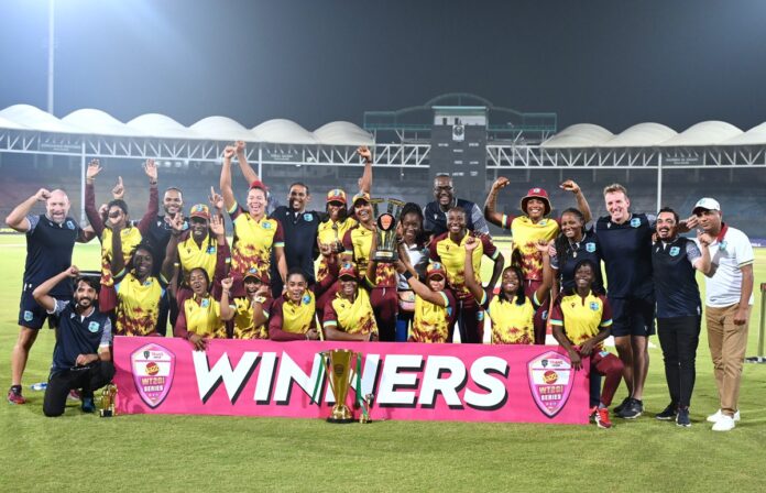 جمعہ کی شب نیشنل بینک اسٹیڈیم میں کھیلے گئے پانچویں میچ میں ویسٹ انڈیز ویمنز نے ٹاس جیت کر پاکستان ویمنز کو بیٹنگ دی جو 20 اوورز میں 8 وکٹوں پر 134 رنز بنانے میں کامیاب ہوسکی۔ جواب میں ویسٹ انڈیز ویمنز نے 18.2 اوورز میں دو وکٹوں کے نقصان پر مطلوبہ اسکور پورا کرلیا۔پاکستان ویمنز کی اننگز میں سدرہ امین نے 52 گیندوں پر پانچ چوکوں کی مدد سے 48 رنز بنائے ۔منیبہ علی نے 25 رنز اسکور کیے انہوں نے ٹی ٹوئنٹی انٹرنیشنل میں اپنے ایک ہزار رنز بھی مکمل کرلیےان سے قبل بسمہ معروف۔ جویریہ خان اور ندا ڈار یہ سنگ میل عبور کرچکی ہیں۔عائشہ ظفر نے 22 رنز کی اننگز کھیلی ۔ ایک موقع پر پاکستان ویمنز کی 84 رنز پر صرف ایک وکٹ گری تھی لیکن اس کے بعد صرف رنز کے اضافے پر 7 وکٹیں گرگئیں۔ایفی فلیچر نے 17 رنز دے کر3 وکٹیں حاصل کیں۔ویسٹ انڈیز ویمنز کی اننگز میں ہیلی میتھیوز نے11 چوکوں کی مدد سے78 رنز بنائے۔ انہوں نے شیمین کیمبل کے ساتھ دوسری وکٹ کی شراکت میں 103 رنز کا اضافہ کیا۔ کیمبل نے33 رنز اسکور کیے اور وہ ناٹ آؤٹ رہیں۔