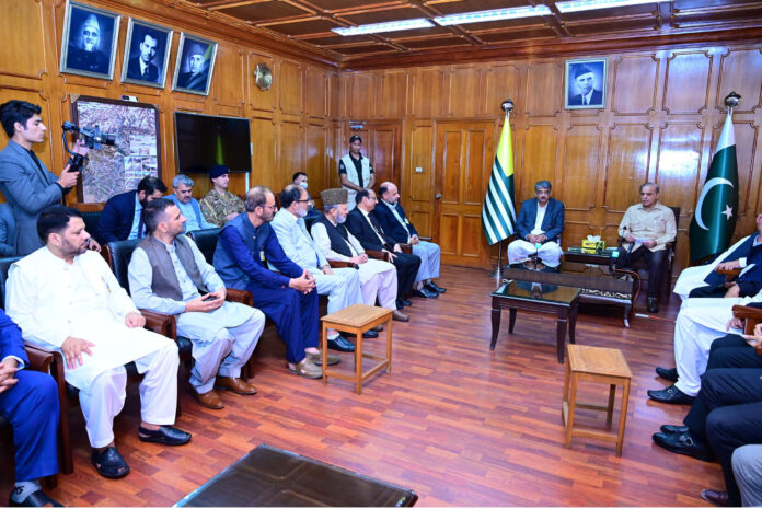 انہوں نے ان خیالات کا اظہار جمعرات کو یہاں جموں و کشمیر کے حریت رہنماؤں کے وفد سے گفتگو کرتے ہوئے جس نے وزیراعظم سے ملاقات میں کی۔ وفد میں محمود احمد ساگر، غلام محمد صفی، سید فیض احمد نقشبندی ، الطاف احمد بھٹ، شہزاد وانی، اعجاز رحمانی ، زاہد اشرف اور الطاف حسین وانی شامل تھے۔ملاقات میں آزاد کشمیر کے وزیراعظم چوہدری انوار الحق اور وفاق وزرا بھی موجود تھے۔ حریت رہنماؤں نے آزاد کشمیر کی حالیہ صورتحال پر قابو پانے کے حوالے سے وزیر اعظم پاکستان کے کردار پر انہیں خراج تحسین پیش کیا۔حریت رہنمائوں نے جموں و کشمیر کی حیثیت کے حوالے سے بھارت کے غیر قانونی یک طرفہ اقدام کی توثیق کی مذمّت اور کشمیریوں سے اظہار یکجہتی پر حکومت پاکستان کا شکریہ ادا کیا۔وفد سے گفتگو کرتے ہوئے وزیراعظم نے کہا کہ پاکستان کشمیریوں کی اخلاقی، سیاسی اور سفارتی سطح پر حمایت ہمیشہ جاری رکھے گا ۔ انہوں نے کہا کہ گیمبیا میں ہونے والے او آئی سی اجلاس میں پاکستان نے جموں و کشمیر کا مقدمہ بھرپور طریقے سے پیش کیا۔ انہوں نے کہا کہ کشمیر کا مقدمہ بین الاقوامی سطح پر مزید بہتر طریقے سے اجاگر کرنے کے لئے وزارت خارجہ اور بیرون ملک پاکستانی مشنز مزید بہتر طریقے سے اپنا کردار ادا کریں گے ۔انہوں نے کہا کہ پاکستانی میڈیابھارت کے غیر قانونی زیر تسلط جموں و کشمیر میں بھارتی مظالم کے حوالے سے دنیا کو آگاہ کرنے میں اپنا کردار ادا کرے۔ وزیراعظم نے وزیر امور کشمیر و گلگت بلتستان انجینئر امیر مقام کو حریت رہنماؤں سے روابط مزید بہتر بنانے کی ہدایات بھی کی۔وزیراعظم نے کہا کہ ہم واضح طور پر بھارتی غیر قانونی طور پر بھارت کے غیر قانونی زیر تسلط جموں و کشمیر کی حیثیت سے متعلق بھارت کے یکطرفہ اور غیر قانونی اقدام کو مسترد کرتے ہیں۔انہوں نے کہا کہ جموں و کشمیر بین الاقوامی سطح پر تسلیم شدہ تنازعہ ہے، جو سات دہائیوں سے زیادہ عرصے سے اقوام متحدہ کی سلامتی کونسل کے ایجنڈے پر حل طلب ہے۔ انہوں نے کہا کہ جموں و کشمیر کے مستقبل کا حتمی فیصلہ اقوام متحدہ کی سلامتی کونسل کی متعلقہ قراردادوں کے مطابق اور کشمیری عوام کی امنگوں کے مطابق ہونا چاہئے۔ وزیراعظم نے کہا کہ بھارت اپنی نام نہاد قانون سازی اور عدالتی فیصلوں کی آڑ میں اپنی بین الاقوامی ذمہ داریوں سے دستبردار نہیں ہو سکتا۔