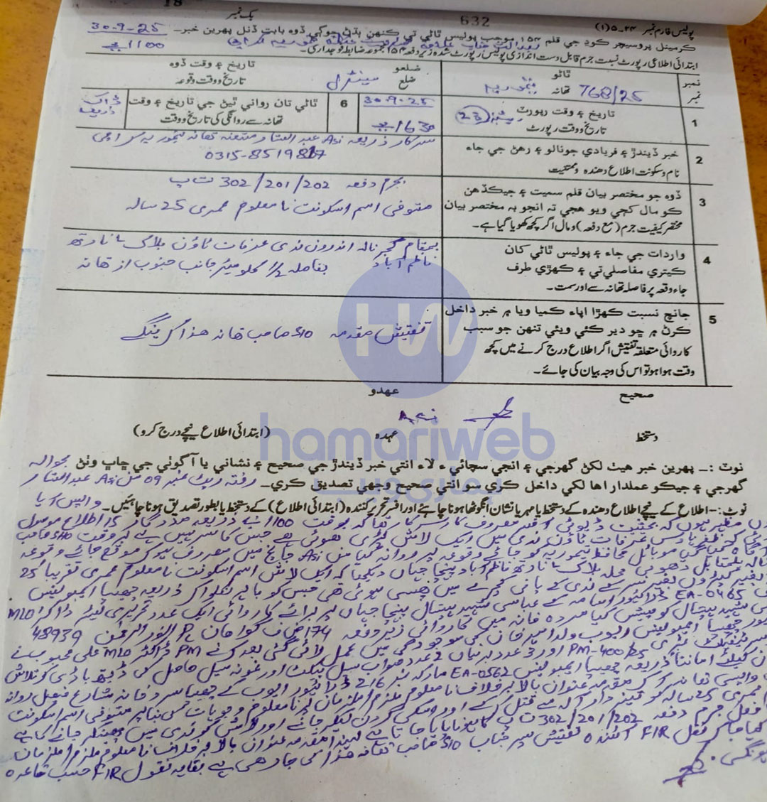 نامعلوم سر کٹی لاش کو ضابطے کی کارروائی کے لیے ایمبولینس کے ذریعے عباسی شہید اسپتال متقل کیا گیا تھا۔ جہاں ایم ایل او علی محبوب نے رپورٹ میں بتایا کہ متوفی کو تیز دھار آلے سے گردن کاٹ کر قتل کیا گیا ہے، لاش کو چھیپا سرد خانے شاہراہ فیصل پر منتقل کردیا گیا جبکہ واقعہ کی ایف آئی آر سرکار مدعیت میں تیموریہ تھانے میں درج کرلی گئی ہے۔ اس حوالے سے پولیس مزید تفتیش کررہی ہے۔